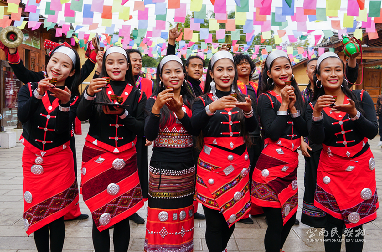 彝族在云南境內(nèi)約471萬人,是省內(nèi)人口最多、分布最廣的少數(shù)民族,主要聚居在金沙江、元江流域和哀牢山、無量山腹地。彝族是一個能歌善舞的民族,民間打歌、跳樂之風(fēng)盛行,大三弦、跌腳舞久負(fù)盛名?;鸢压?jié)是彝族最具特色的民族節(jié)日。彝族村占地50余畝,三虎浮雕墻與虎頭內(nèi)祖師形象表現(xiàn)了彝族虎鷹文化。太陽歷廣場圖騰柱上有太陽、虎、火和八卦圖形象,周圍環(huán)繞著10個朝向不同的月球造型,外圓周有12生肖石雕。依山而建的“...